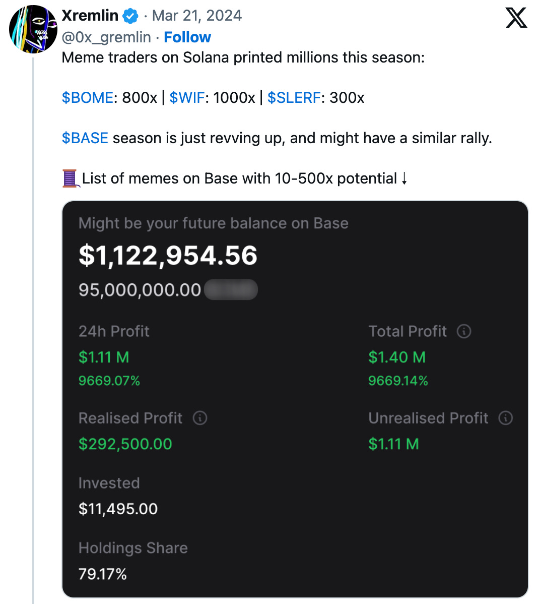 Taking part in crypto helps us to understand where things are moving to—certainly memecoins have a lot more credibility now in 2024. Who is to say how they develop and innovate from here on.