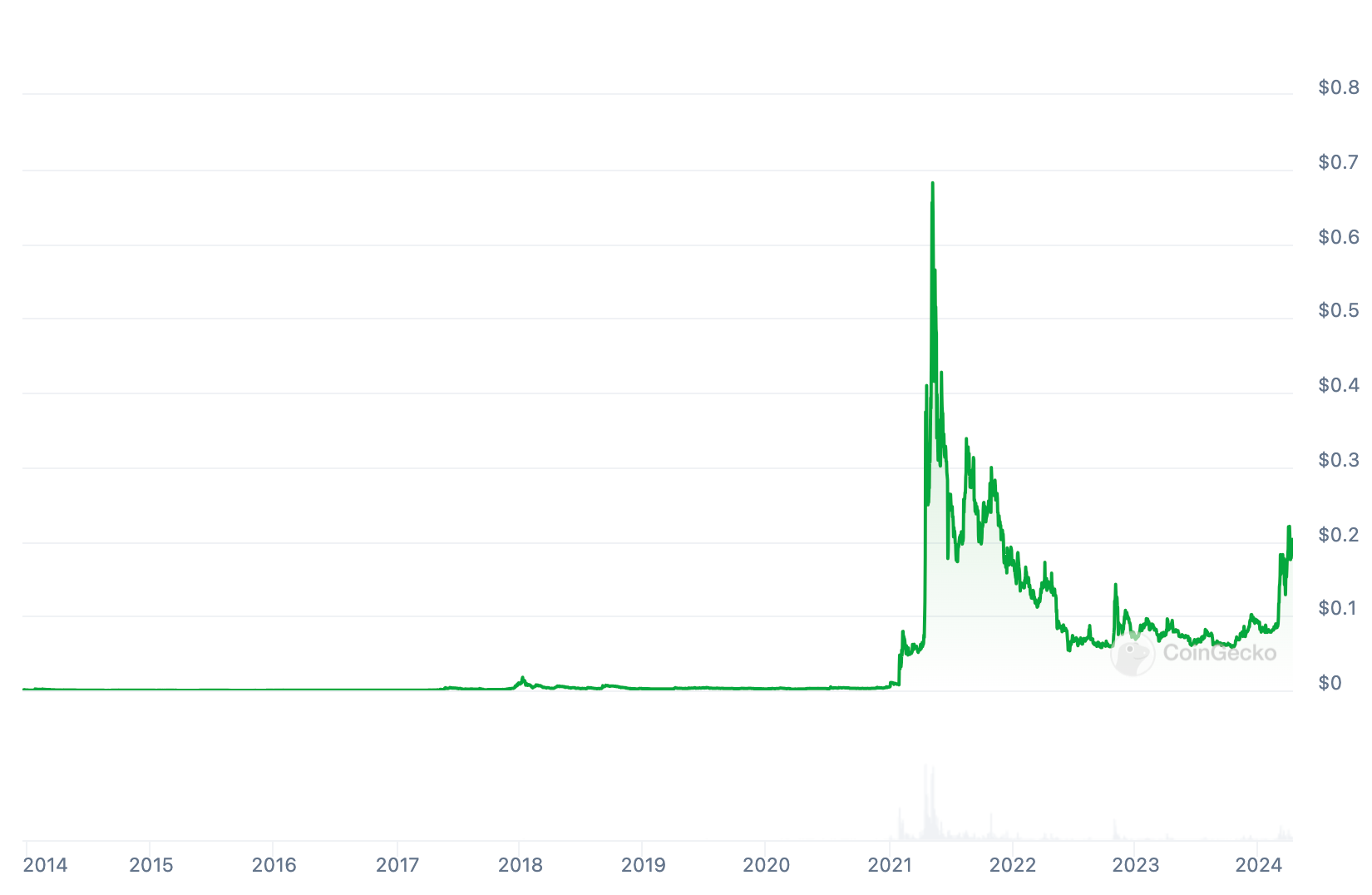 Dogecoin is the original memecoin. It launched in December 2013 as a joke alternative to Bitcoin, which was gathering momentum at the time, using a popular meme. If Dogecoin had utility, it was to be a digital currency for the internet. It was cheap to send—i.e. low gas fees—and since it had little value, it was used to tip users on Reddit, where it first broke out. Broadly though, it was just for fun.
