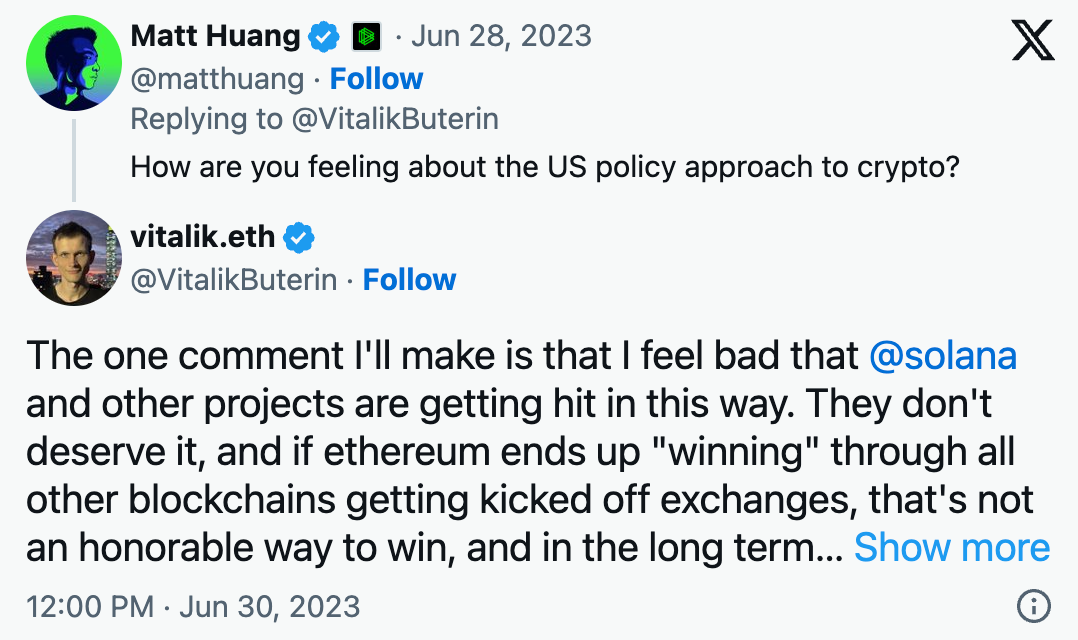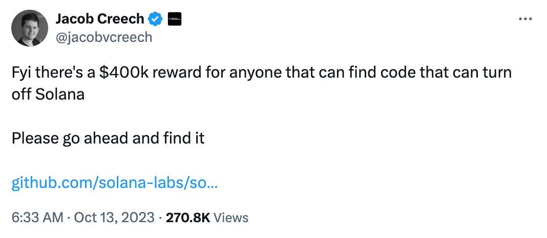 First up though, Solana will need to fight off the US SEC. The SEC named SOL as one token that it deems a security in a case against exchange business Coinbase, as we wrote back in our first issue last year. Failure to shake off this tag will make doing anything else much, much harder, as even Ethereum creator Vitalik Buterin has acknowledged.