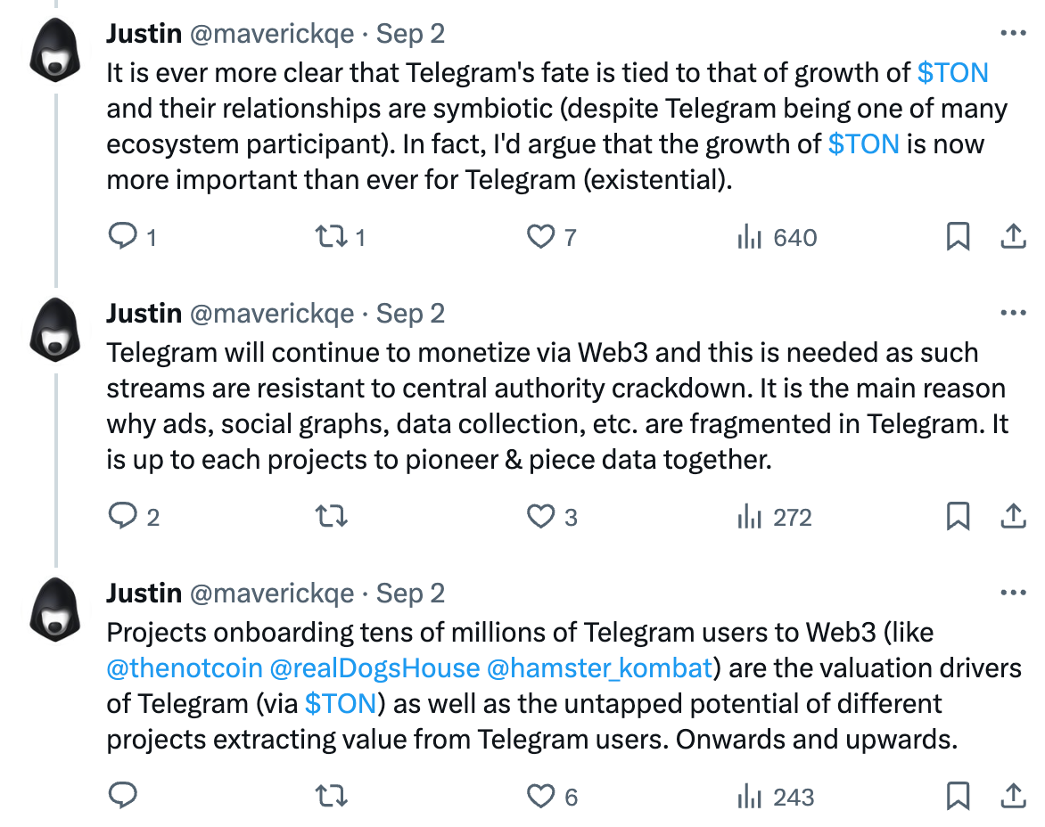 In our previous story we noted that Telegram’s integration of TON was an advantage for both sides because it enabled (a) developers building on TON to reach Telegram’s 900 million active users and (b) differentiated the user experience on TON by adding crypto-centric features for those who want them.