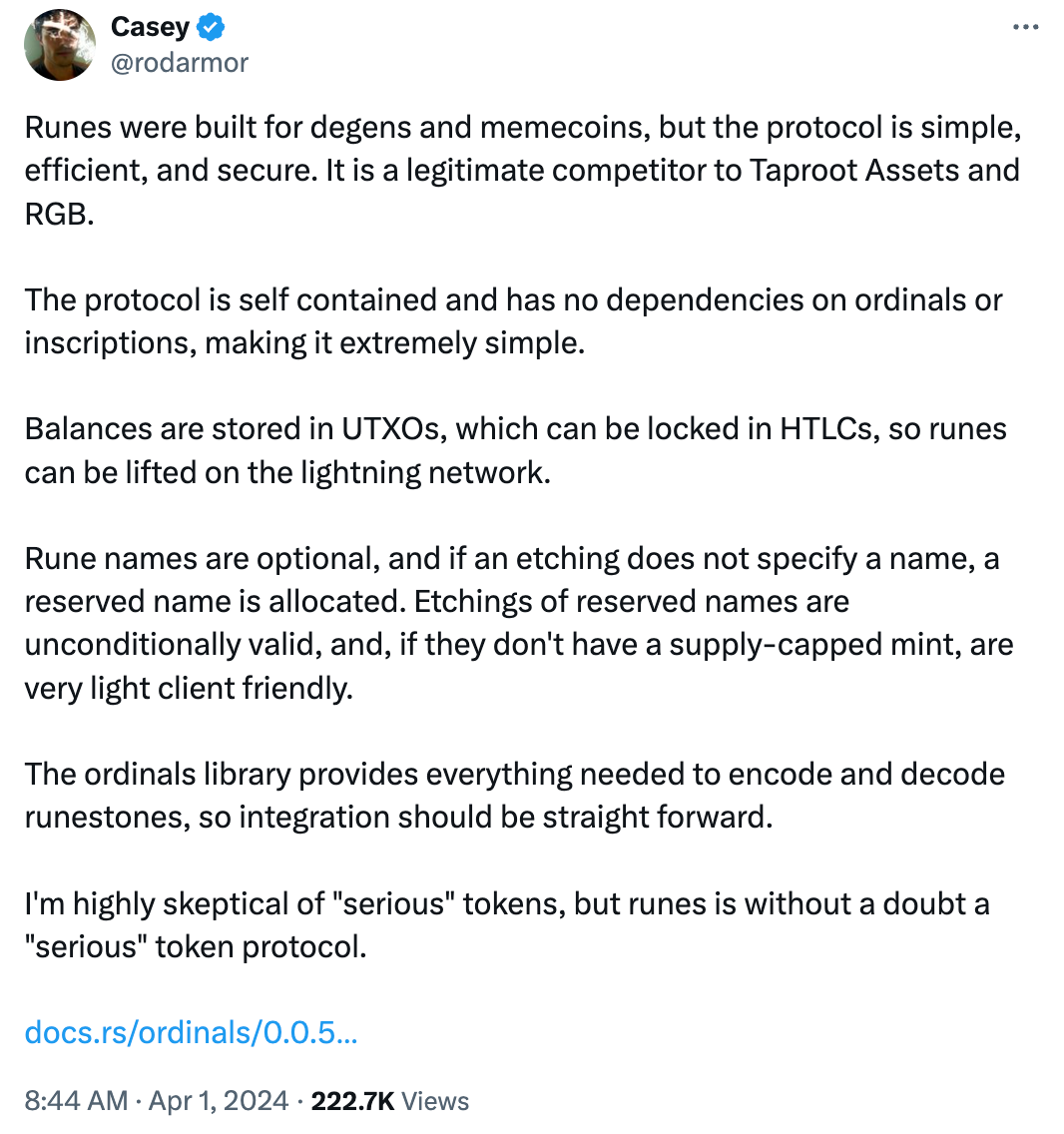Looking into the future, Bitcoin looks poised to become a lot more active based on a new token standard that is launching alongside the halving: runes.